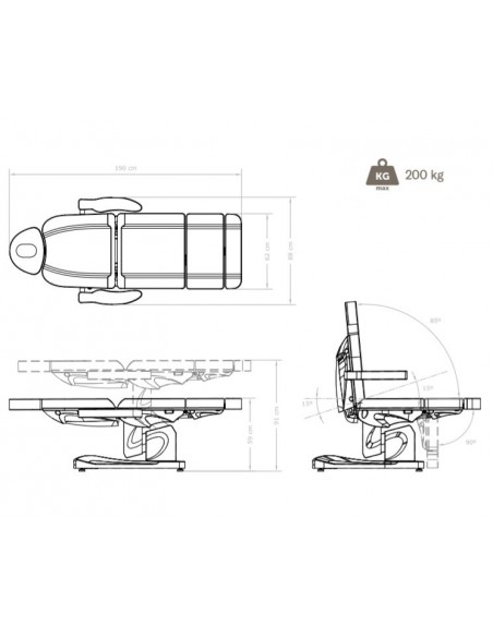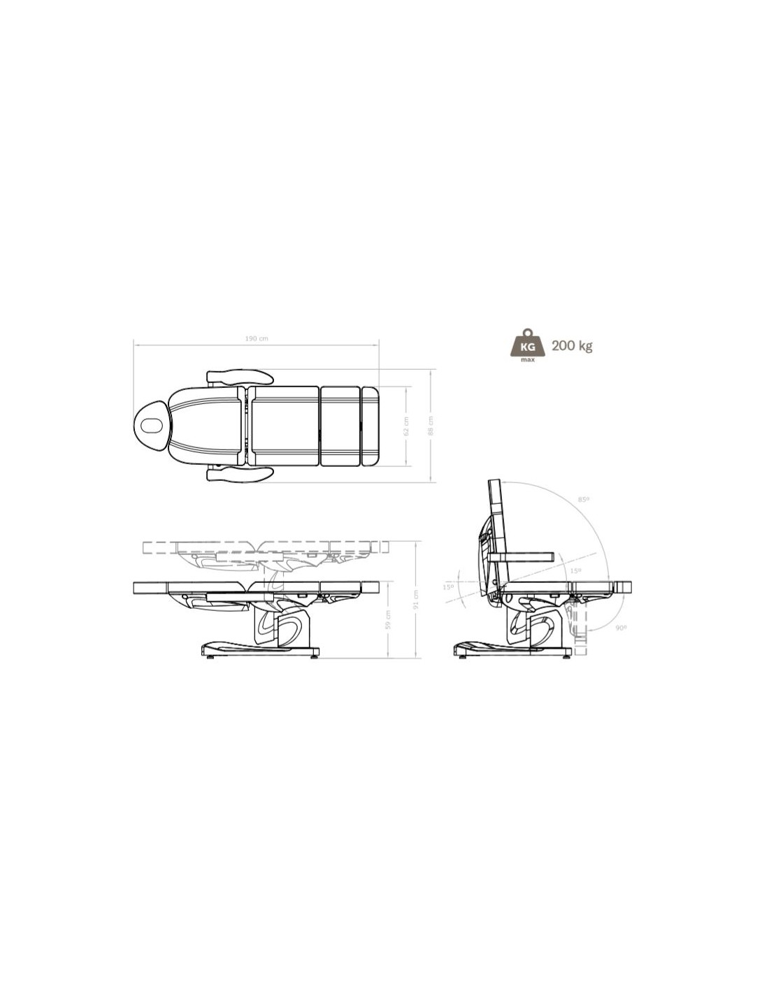Il Lettino elettrico Sonia Mizar è indicato per ambiti estetici e può diventare un'ottima poltrona per trattamenti estetici.  Dimensioni 190 x 62 cm (senza braccioli), 88 cm con braccioli; cinque segmenti