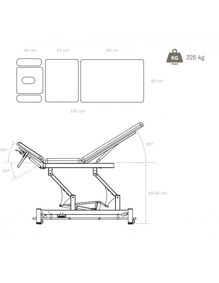 Questo lettino elettrico permetterà di eseguire le più importanti manovre di trattamento fisioterapico: