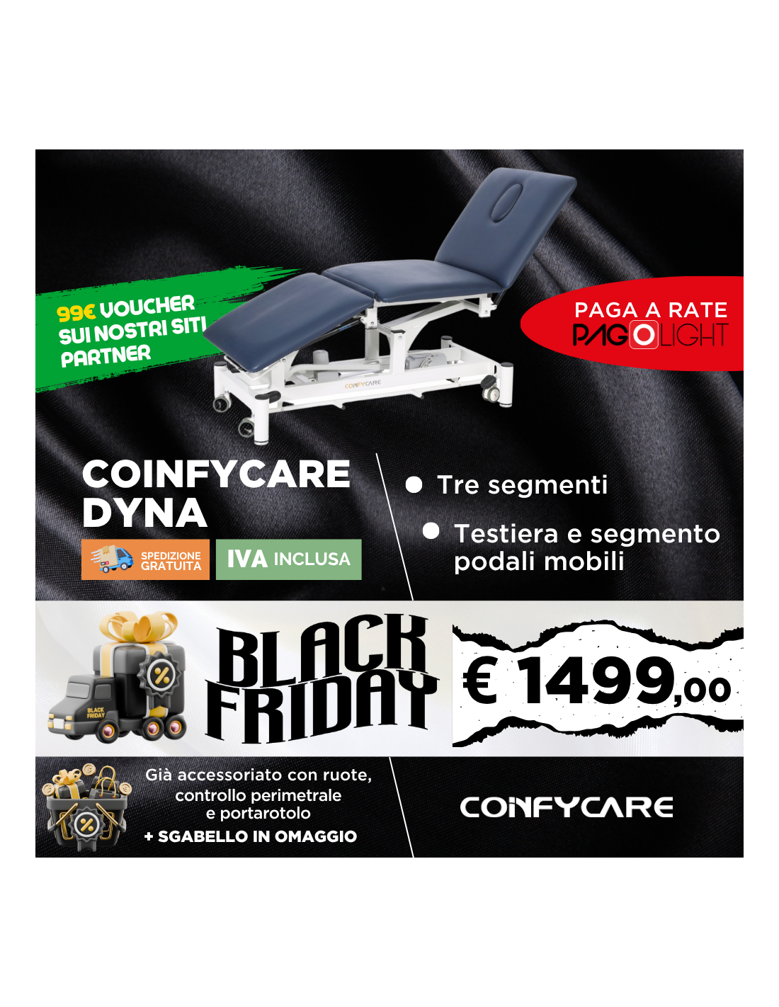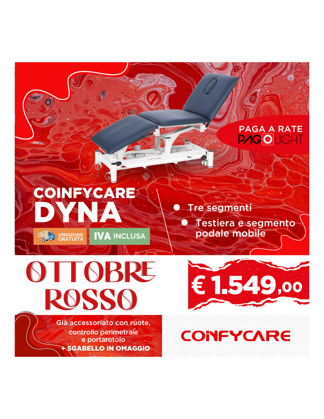 Dotazione Standard del lettino elettrico Confycare Dyna
