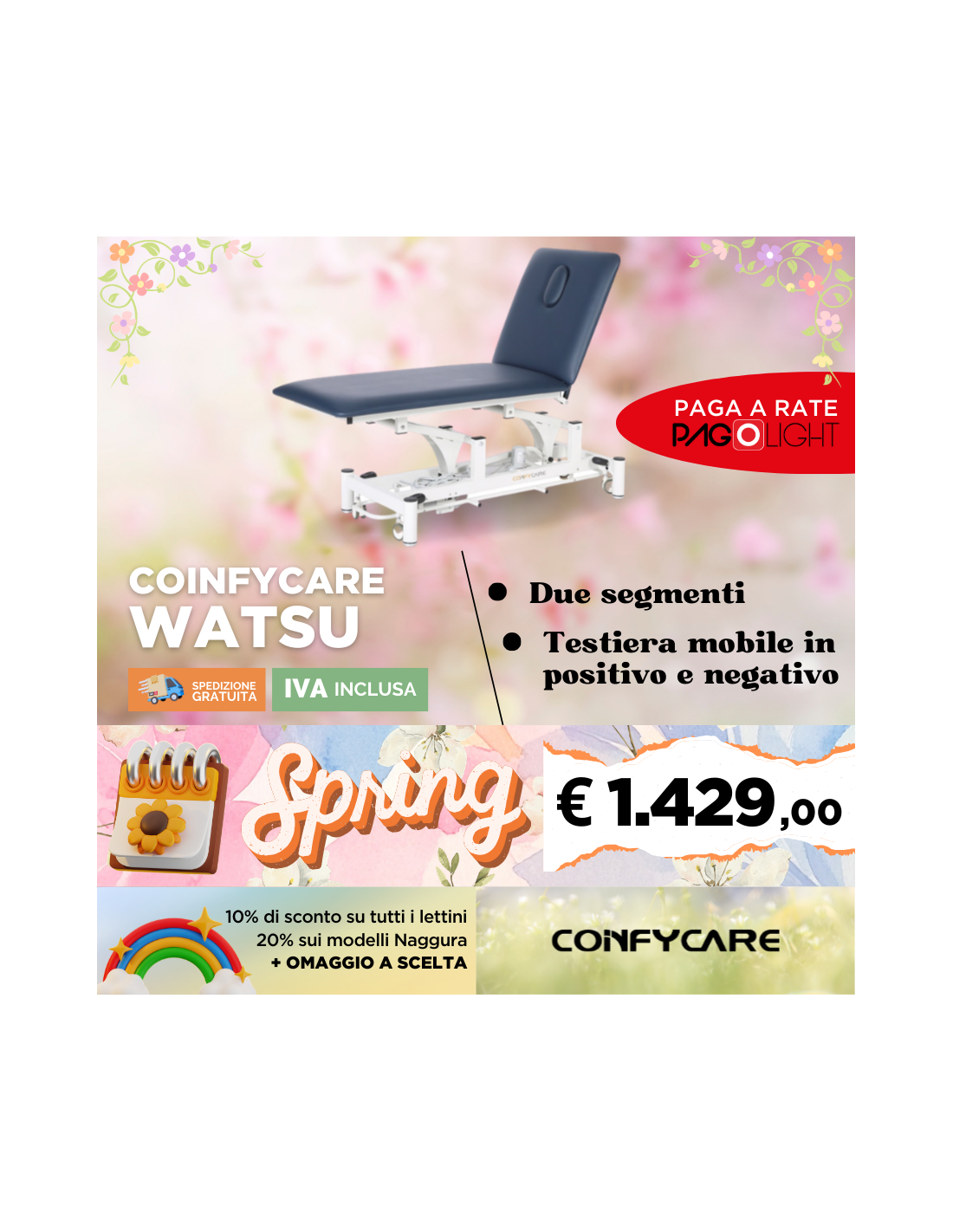 Lettino elettrico Coinfycare Watsu, 2 sezioni perfetto per osteopata e fisioterapia