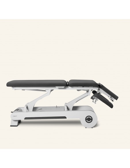 Lettino elettrico per trattamenti a 5 sezioni e doppio motorino elettrico e testiera con tre segmenti (braccioli laterali), utile per molteplici posizioni che offre.