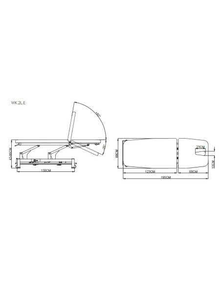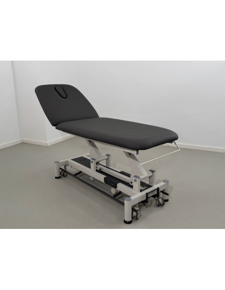 Lettino elettrico a 2 sezioni per realizzare trattamenti con il paziente completamente sdraiato o semisdraiato. Schienale regolabile sia in positivo che negativo (+80º - 25º)