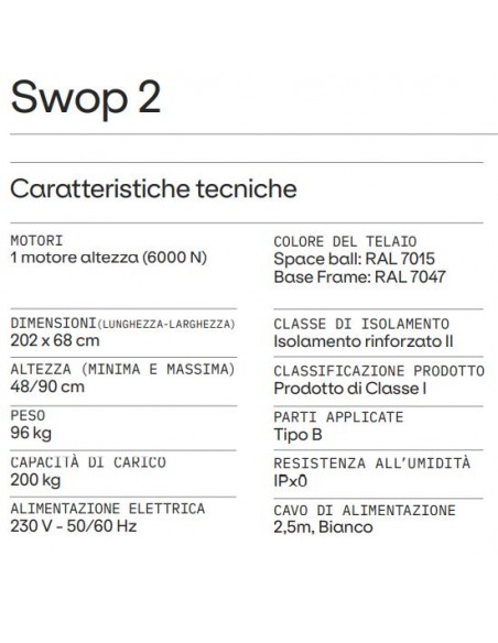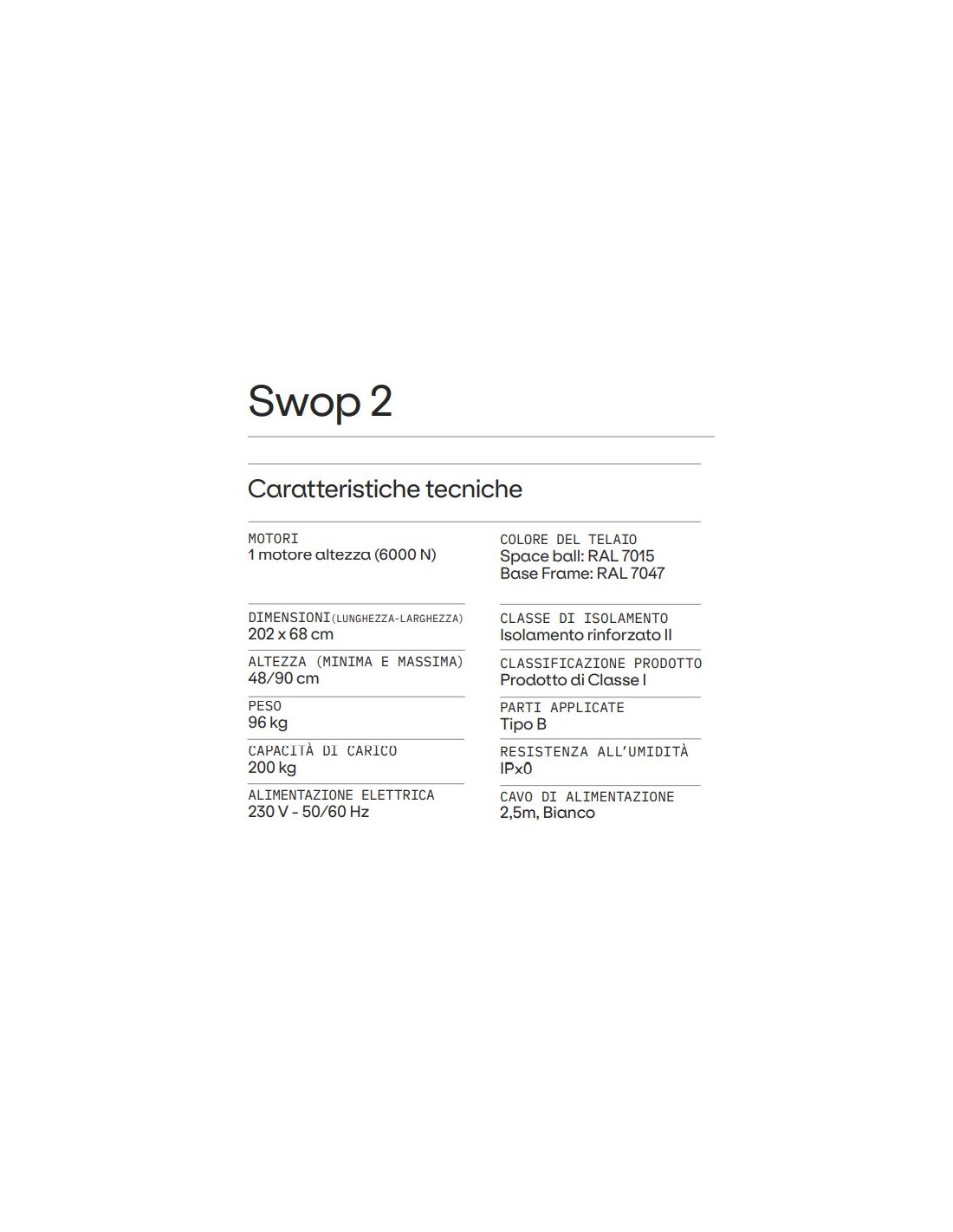 Caratteristiche generali del lettino elettrico Naggura Swop 2