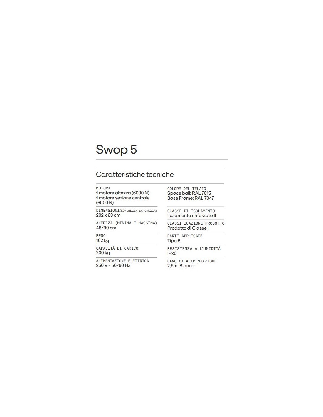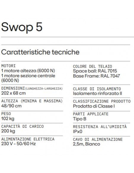 Caratteristiche generali del lettino elettrico Naggura Swop 5