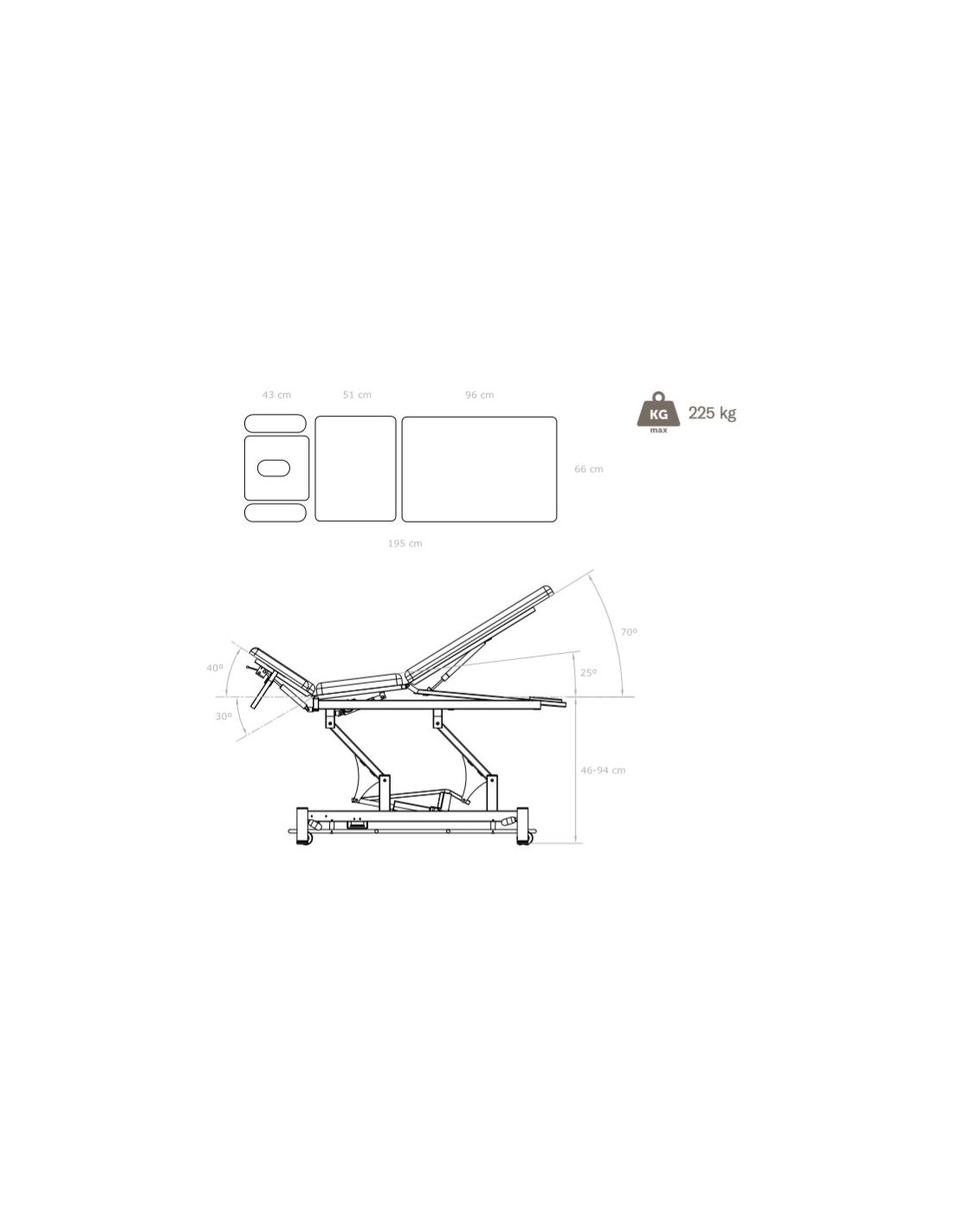 Il Lettino elettrico Coinfycare Nott è indicato per  osteopatia e fisioterapia.  Dimensioni 195 x 66 cm; cinque segmenti